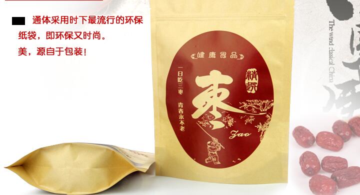 紅棗包裝袋廠家采用全新_紙質(zhì)材料,_分解。精心設(shè)計(jì),中國風(fēng)式包裝。厚度_,密封性能_;