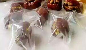 如果客戶的銷售利潤高,而且棗夾核桃想要達到儲存時間長、保鮮好等特點,我們都是建議做成真空包裝袋。一般做成抽真空情況,會讓棗與核桃能夠更緊密的包在一起,效果_。