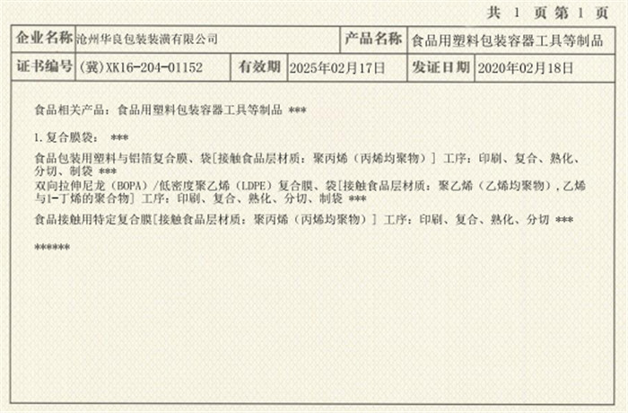 公司名稱:滄州華良包裝有限公司 公司地址:河北省東光縣于橋工業(yè)區(qū) 電話:400-070-0190 傳真:0317-7749444 手機(jī):13832733434 網(wǎng)址: